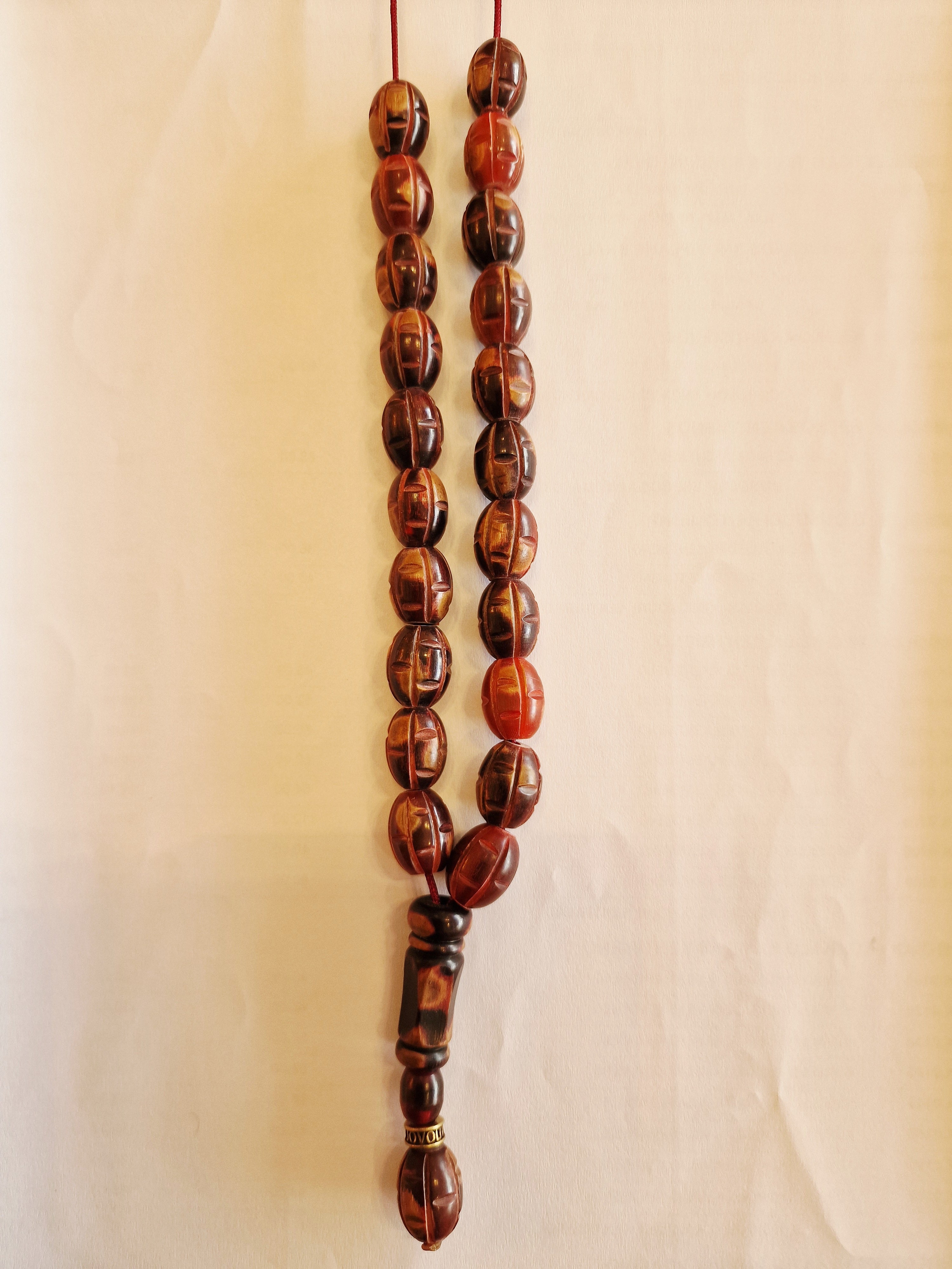 Περιγραφή : Κέρατο κοκκινο σκαλιστό 21 χάντρες Διάμετρος χάντρας : 14-16 mm