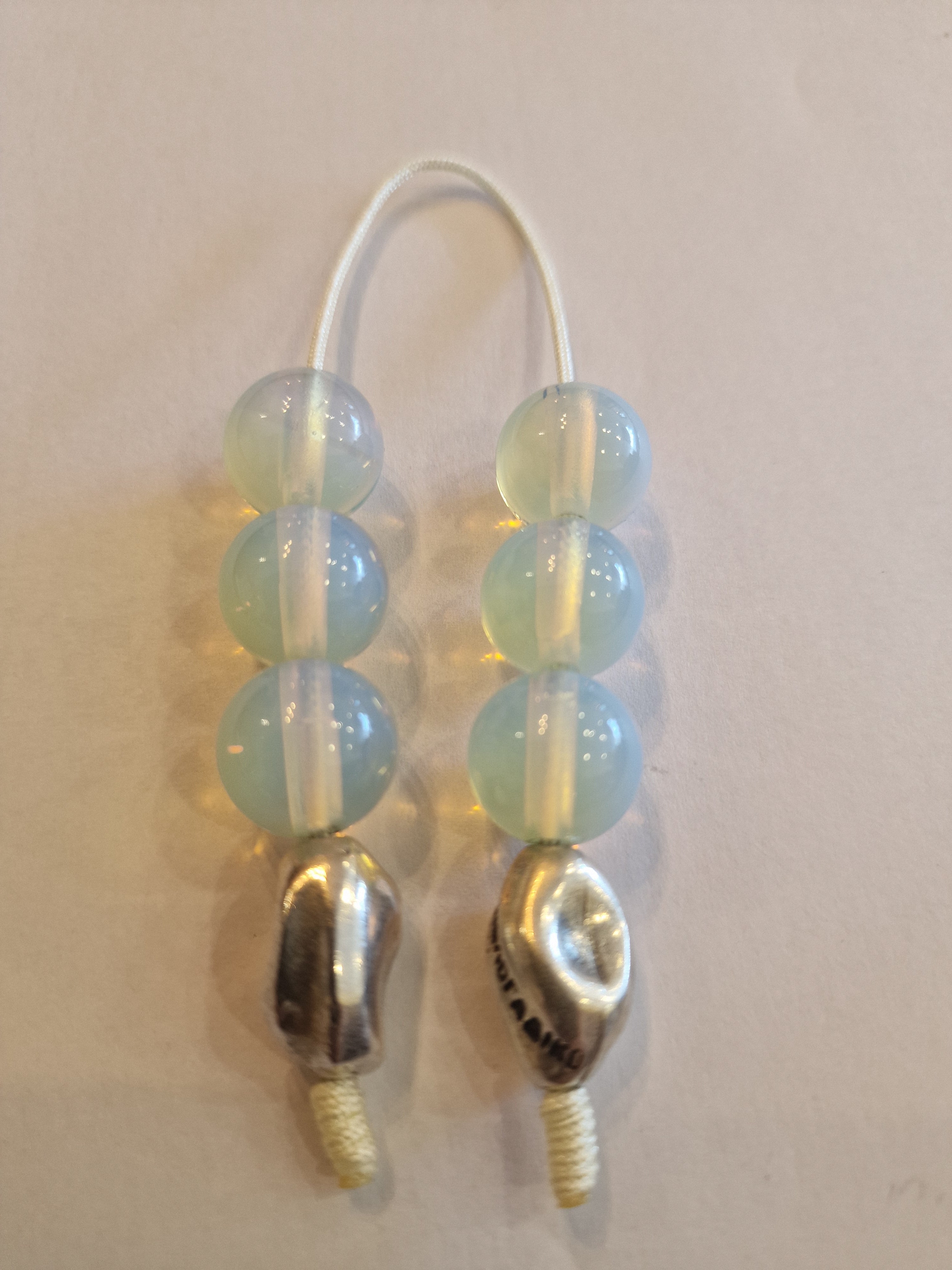 Περιγραφή : Μπεγλέρι από ημιπολίτιμο λίθο (Φεγγαρόπετρα) - 6 χάντρεςΔιάμετρος χάντρας : 12x15 mm